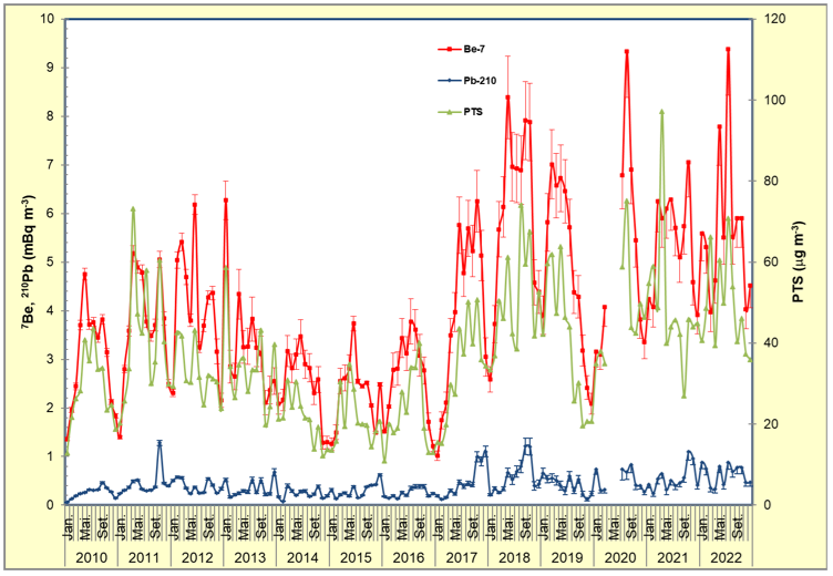 Independentemente da sua origem, os radionuclídeos podem ocorrer na atmosfera na forma gasosa ou particulada (associados ao aerossol atmosférico). Em geral, a forma particulada é a que representa maior risco radiológico, uma vez que essas partículas interagem com a biosfera, através de processos de transporte e deposição atmosférica.