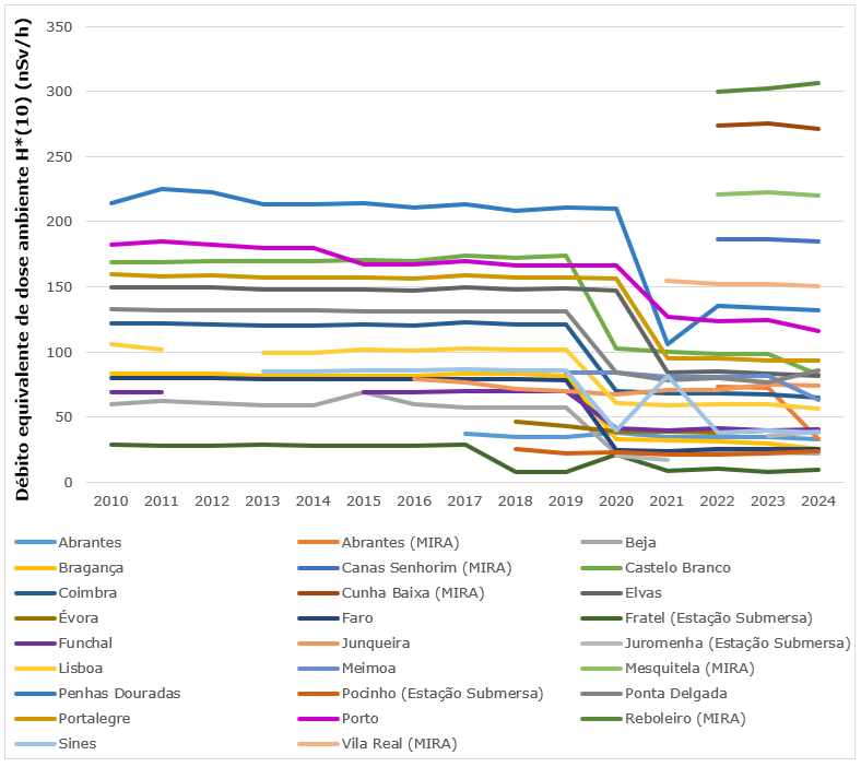 Desde 1989, Portugal mantém operacional uma Rede de Alerta de Radioatividade no Ambiente (RADNET) em funcionamento contínuo, apta para detetar situações de aumento anormal de radioatividade no ambiente. Nos últimos anos foram substituídas as estações mais antigas da RADNET por versões mais recentes, com capacidade de, para além da medição dos débitos de dose de radiação gama [na grandeza de H*(10)], identificar também os radionuclídeos presentes no ambiente, permitindo discernir melhor a potencial origem de qualquer aumento não expectável da radioatividade e melhorando a sensibilidade da rede.