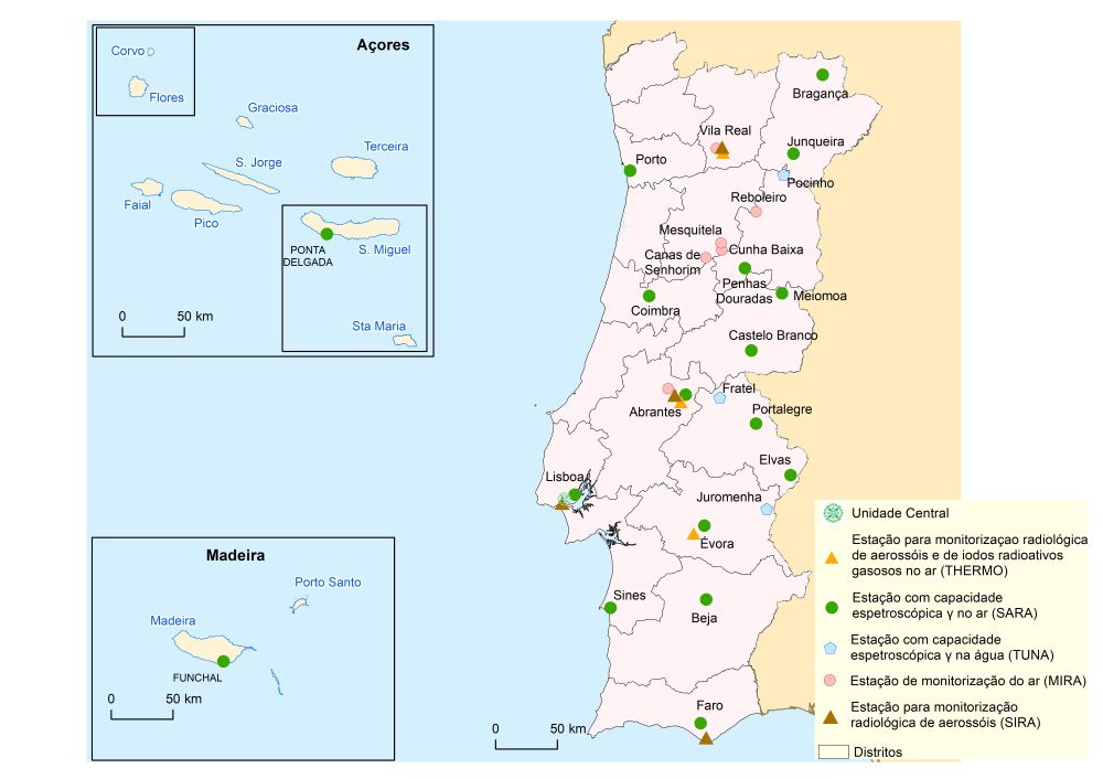 A rede conta também com cinco estações para a monitorização contínua de radionuclídeos em aerossóis e iodo radioativos instaladas em Vila Real, Abrantes, Évora, Faro e Algés, garantindo a expansão e diversificação desta rede.