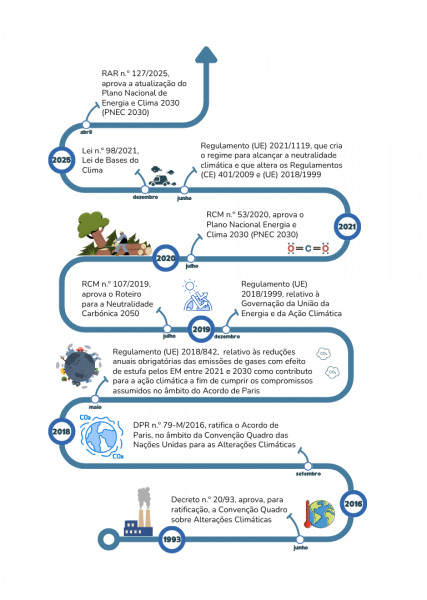 Não obstante ter sido um dos primeiros países a assumir o compromisso da neutralidade climática, alinhado com o mesmo objetivo estipulado a nível comunitário pela Lei europeia em matéria de clima, Portugal, ciente dos desafios e principalmente das oportunidades associadas à transição energética e climática, comprometeu-se a antecipar a meta da neutralidade climática para 2045, em linha com o preconizado na Lei de Bases do Clima (LBC) a nível nacional.